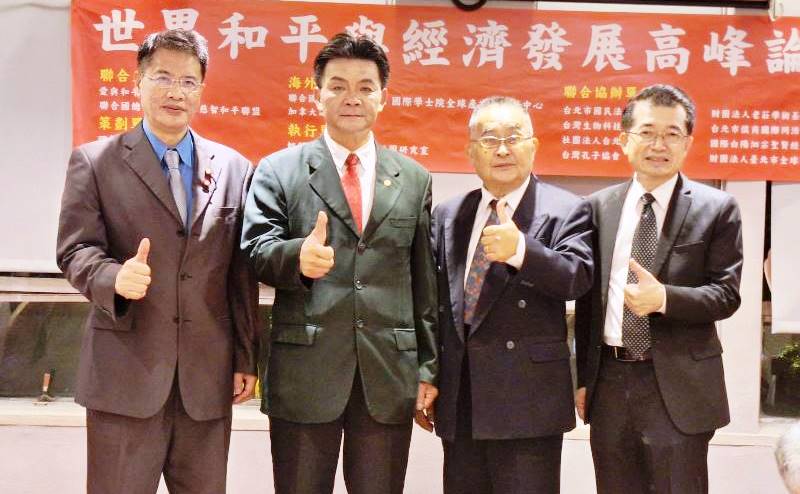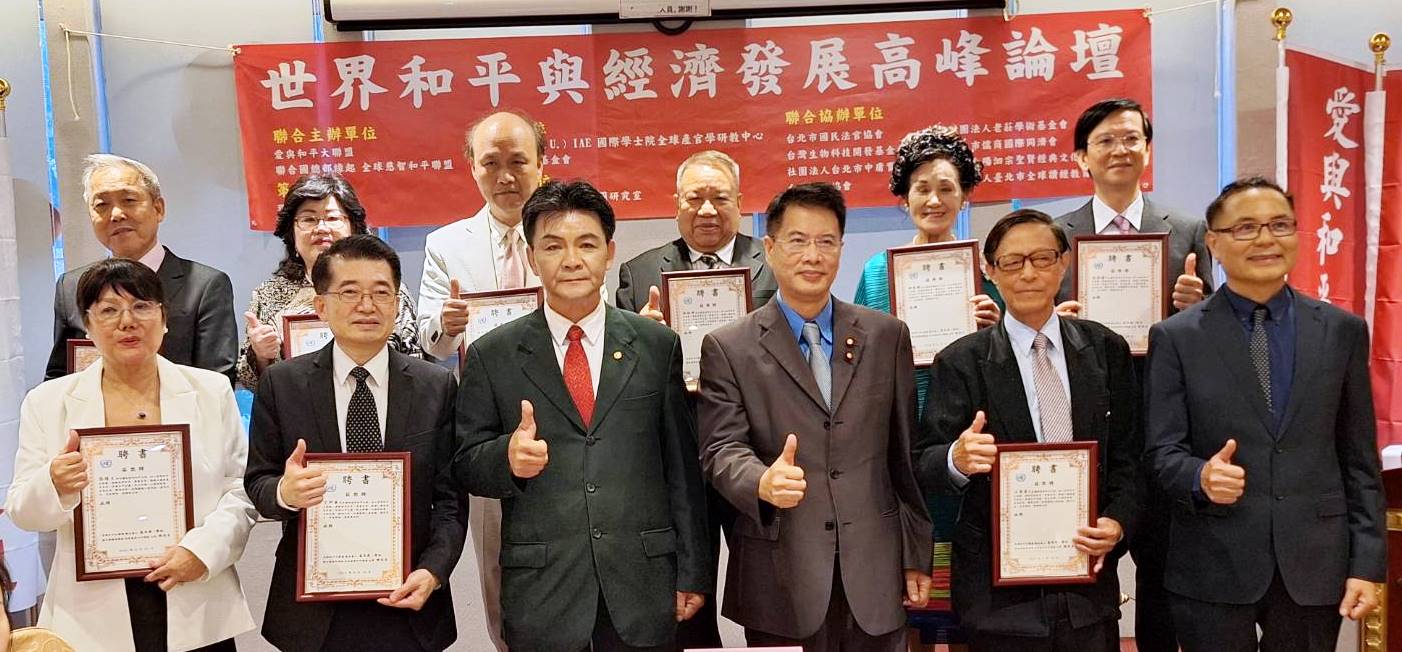 為追求世界和平與經濟發展,由「愛與和平大聯盟」與「聯合國總部緣起全球慈智和平聯盟」聯合主辦的一場《世界和平與經濟發展高峰論壇》於8月16日(週五)下午4時至9時在台北市立法院國會餐廳(康園餐廳)舉辦。海內外各界精英齊聚,論壇中邀請雷倩、丁興華、張瓊文等三位貴賓做專題演講,會後倡議「世界和平宣言」,推選12位「世界和平大使」,成立「世界和平大使團」,將共同推動國際合作,促進世界和平。